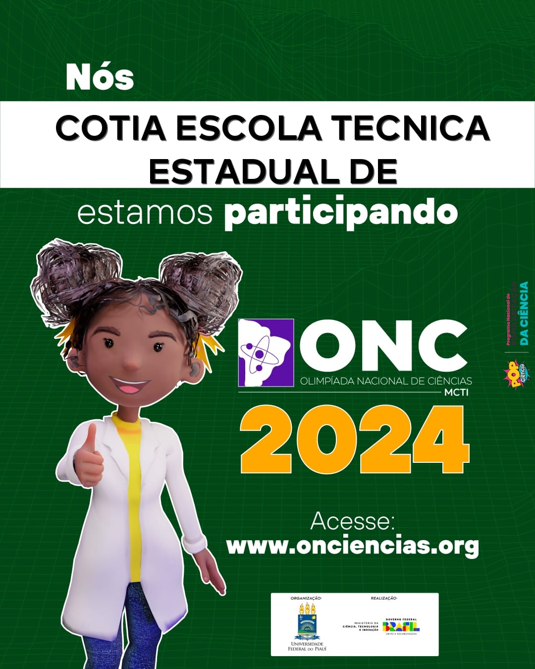 Portanto, alunos da Etec de Cotia, aproveitem essa oportunidade! Participar da ONC é um passo importante na jornada acadêmica e uma chance de fazer a diferença no mundo. Juntos, podemos mostrar o potencial de nossa escola e contribuir para um futuro mais científico e inovador.
