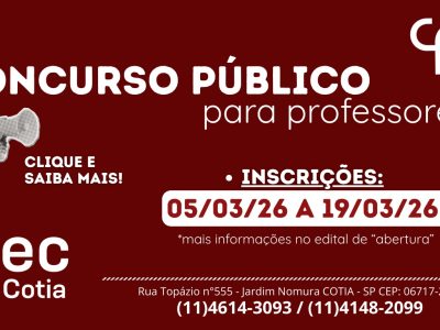Estão abertos o processo do concurso público para docentes do Centro Paula Souza, com vagas na Etec de Cotia! 👩🏫📚 📌 Redução ou isenção da taxa de inscrição:Solicitações de 02/03/2026 a 04/03/2026. 📝 Período de […]