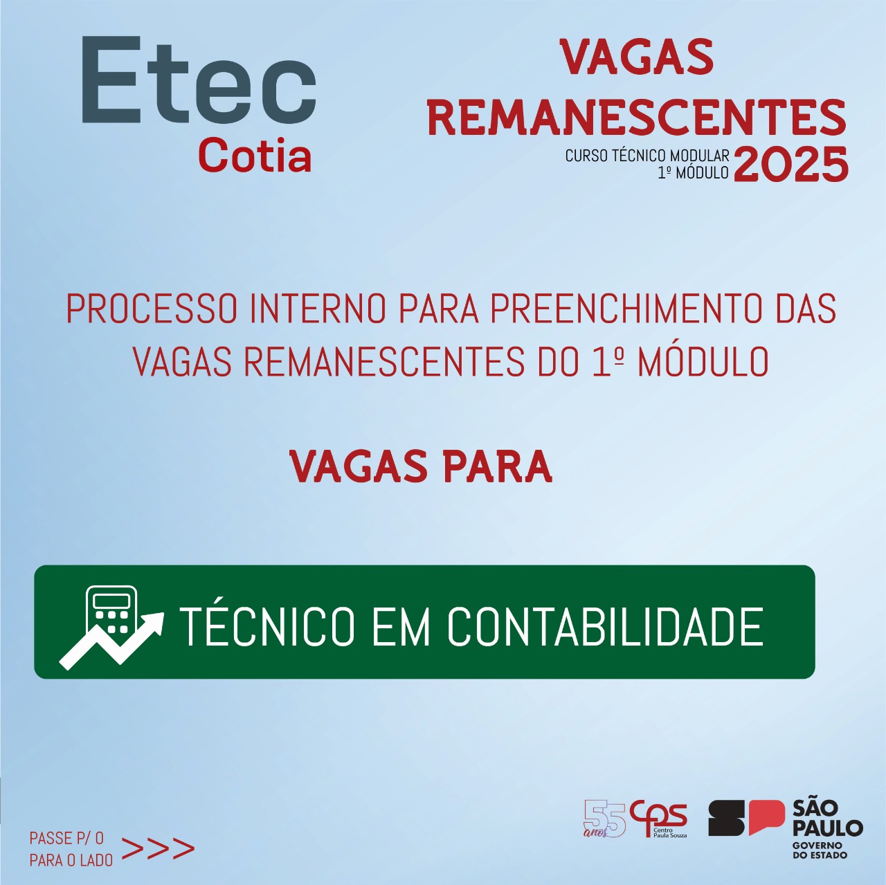 📝 PROCESSO SELETIVO INTERNO PARA PREENCHIMENTO DAS VAGAS REMANESCENTES DO 1º MÓDULO DO CURSO TÉCNICO EM CONTABILIDADE